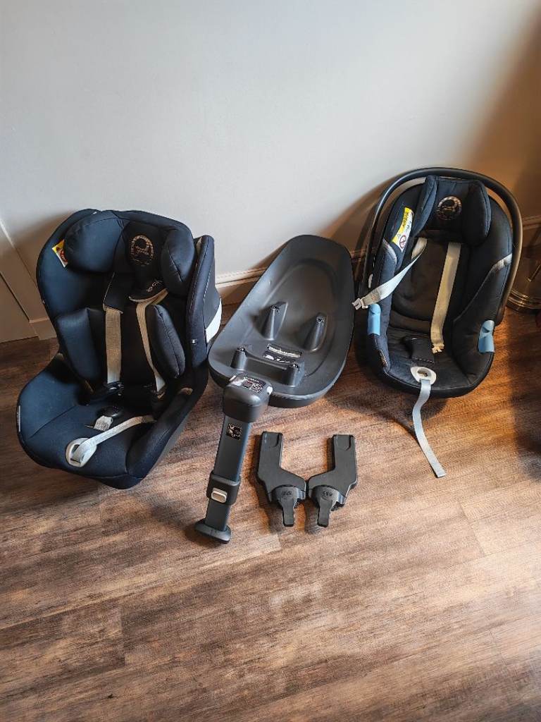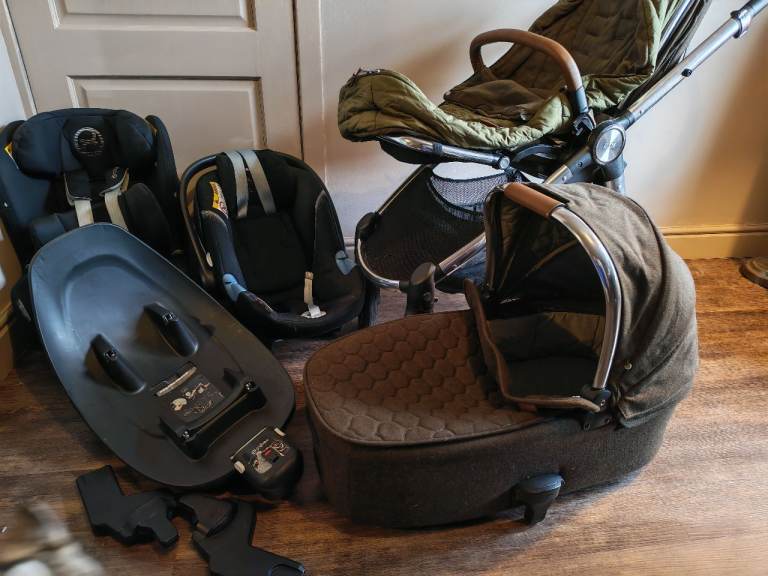 Pram, stroller, isofix base with car seat + next size up car seat, cybex adaptors to attach seat to chassis