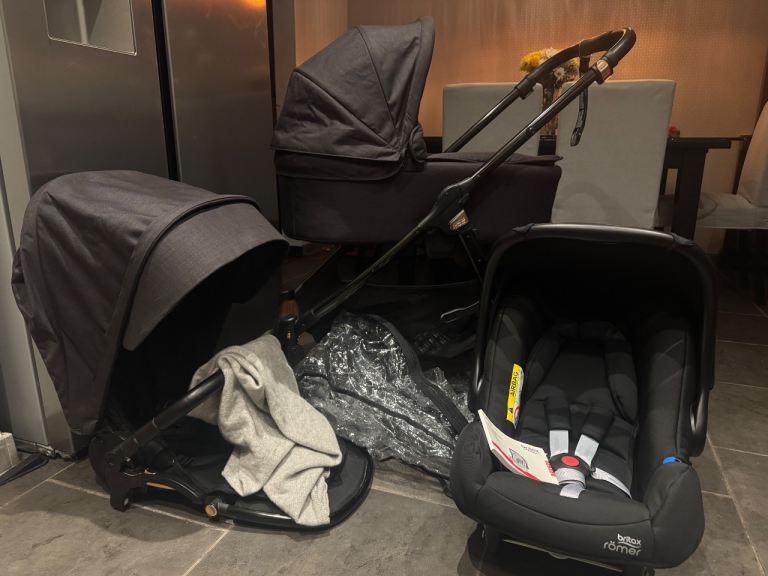 Big bundle like new Pram Mamas & Papas signature all black set with new car seat Britax mosses bask