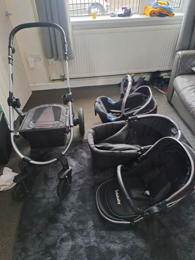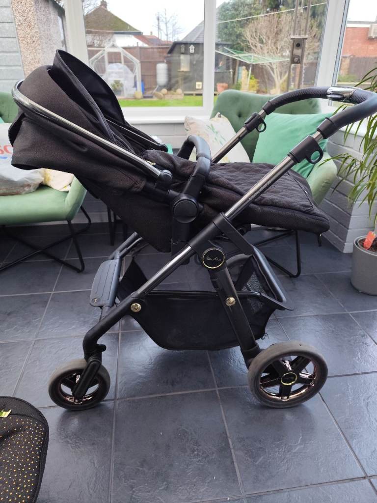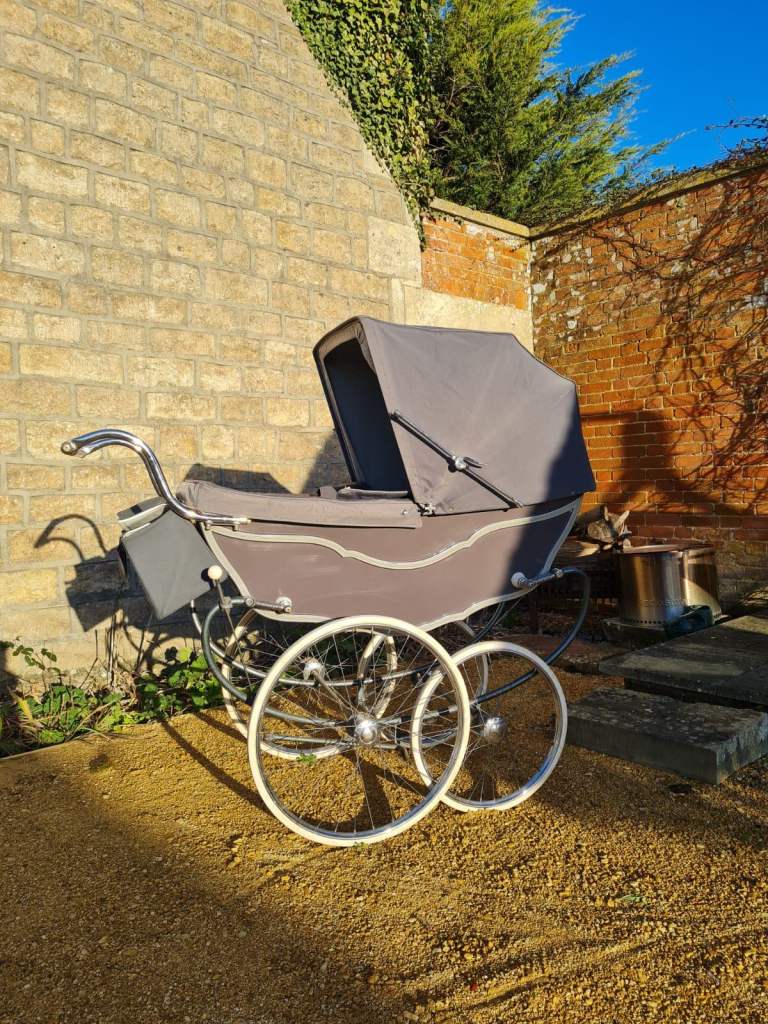 • 2x Grey Melange carrycot fabrics with mattresses & aprons