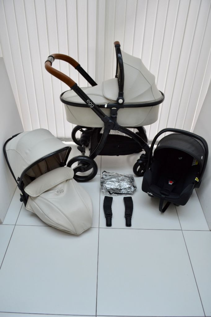 BABYSTYLE EGG JURASSIC CREAM LIMITED EDITION PRAM/STROLLER/CARRYCOT AND JOIE CAR SEAT & CAR SEAT ADAPTORS