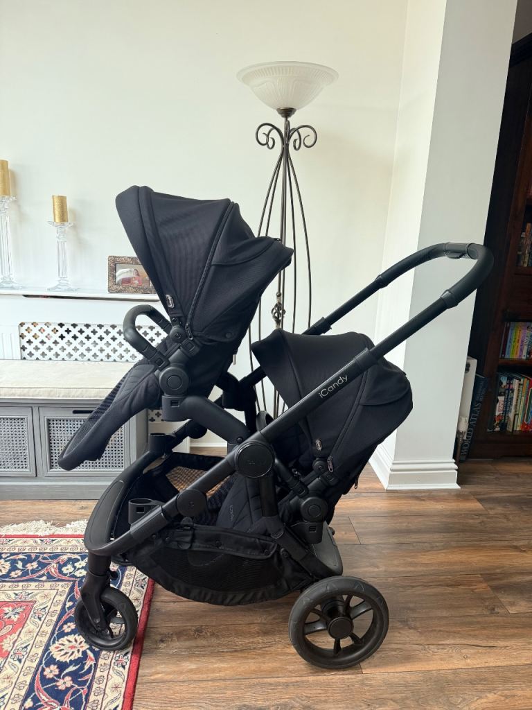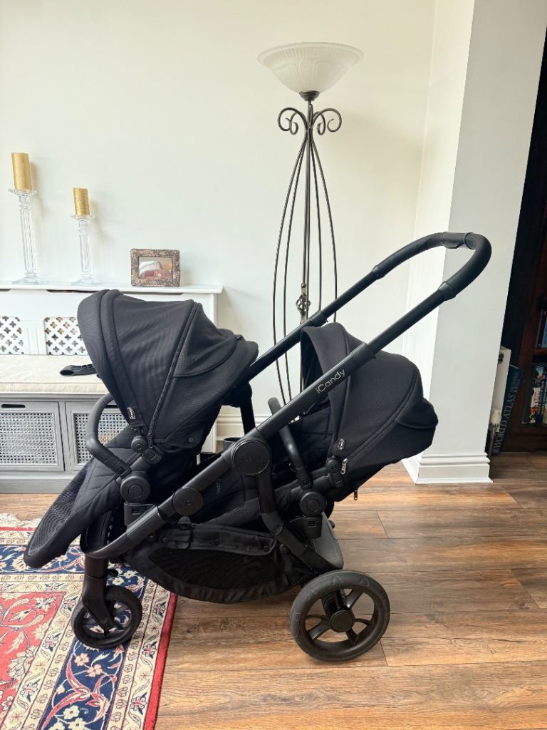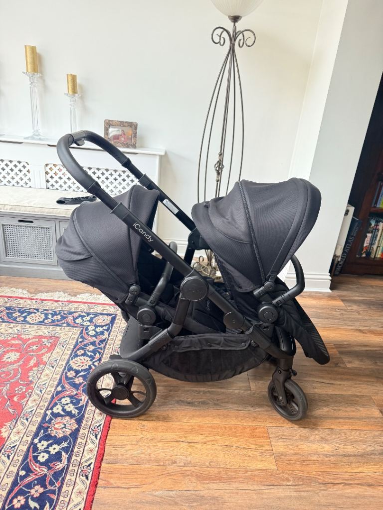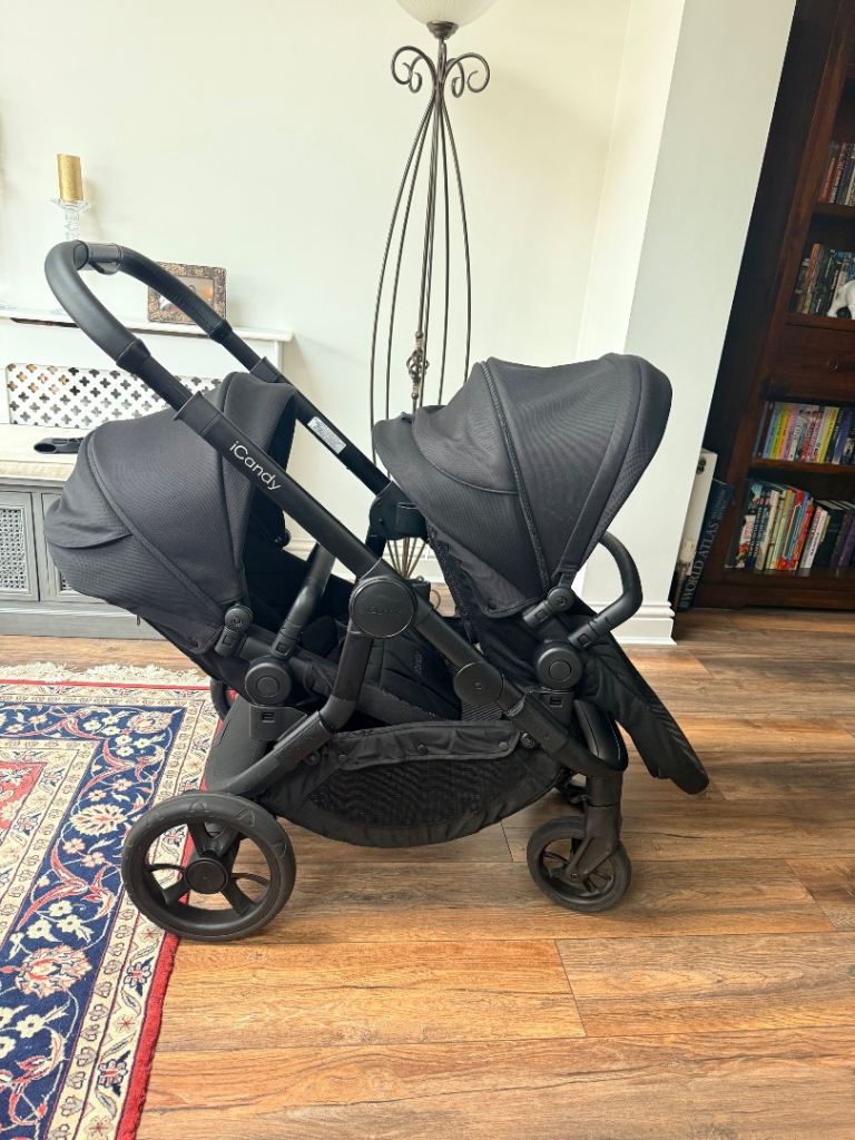 iCandy orange 4 black double pram , in good condition, included 2 seats, one carrycot cover, adaptors, 2 rain covers , cash only , collect from Sutton Surrey
