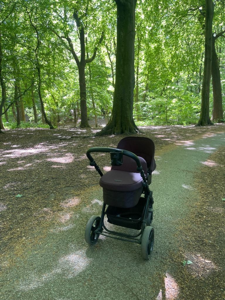 Pram set with baby and toddler seats foot warmer , rain cover .