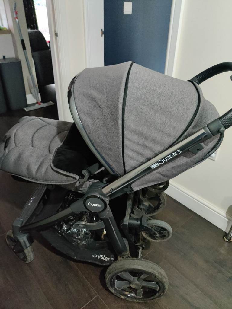 Oyster 3 pushchair from 2022 in grey, used by two babies. Well-loved and showing normal signs of use but still plenty of life left!