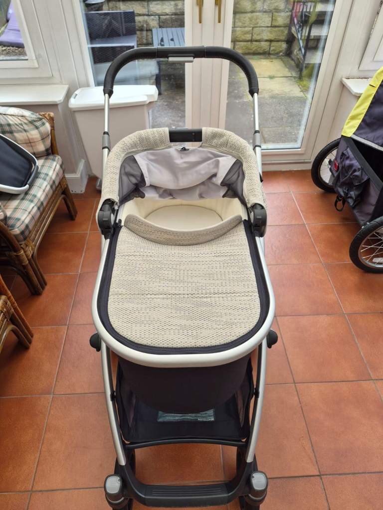 This Silver Cross 3-in-1 pushchair comes in a lovely beige colour, well-maintained.