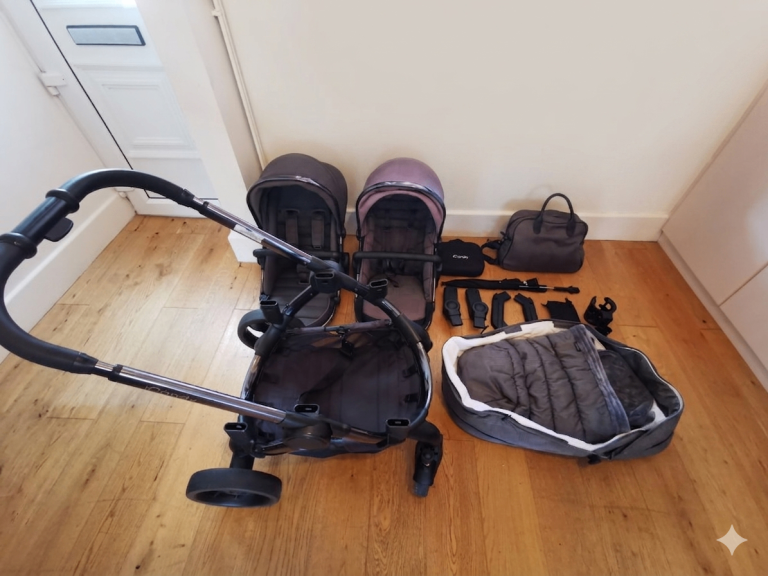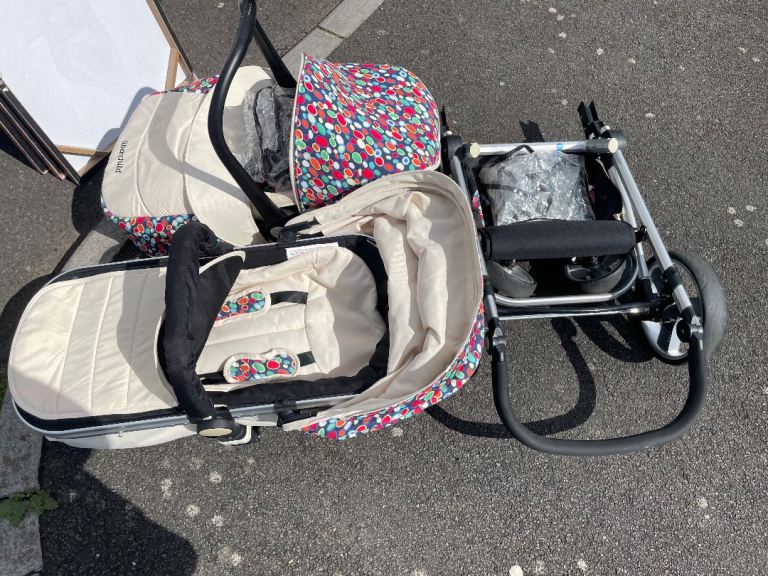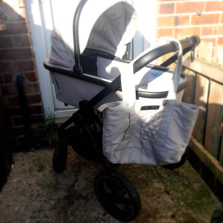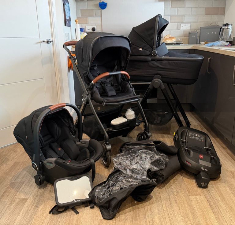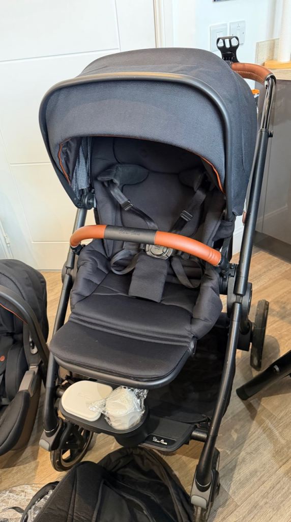 Posting for under a monthSilver Cross Reef Pram Bundle includes car seat and cot bed