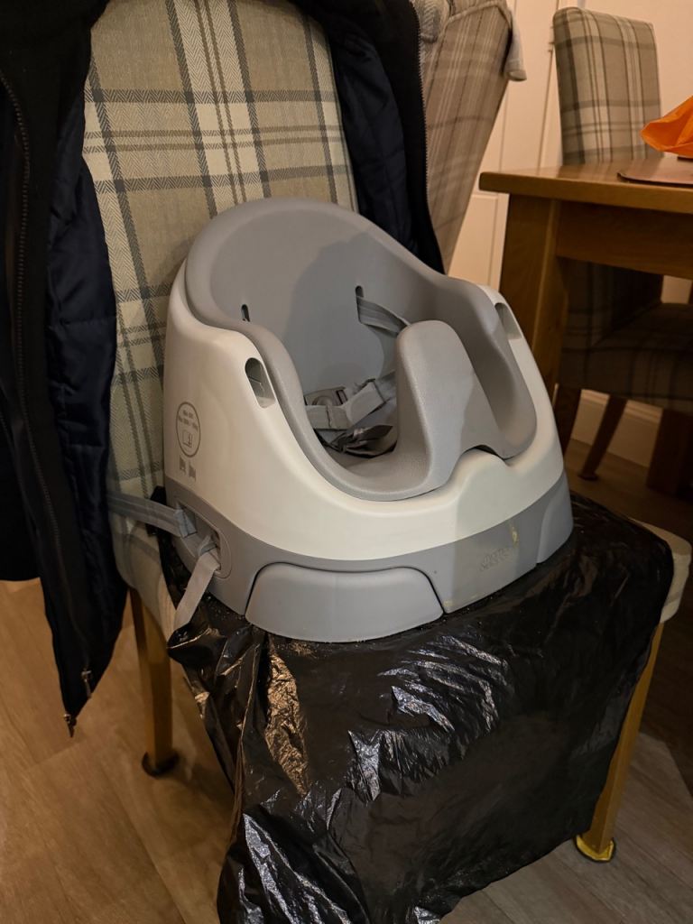 Booster seat (mamas & papas) for dinner table (£10.00).