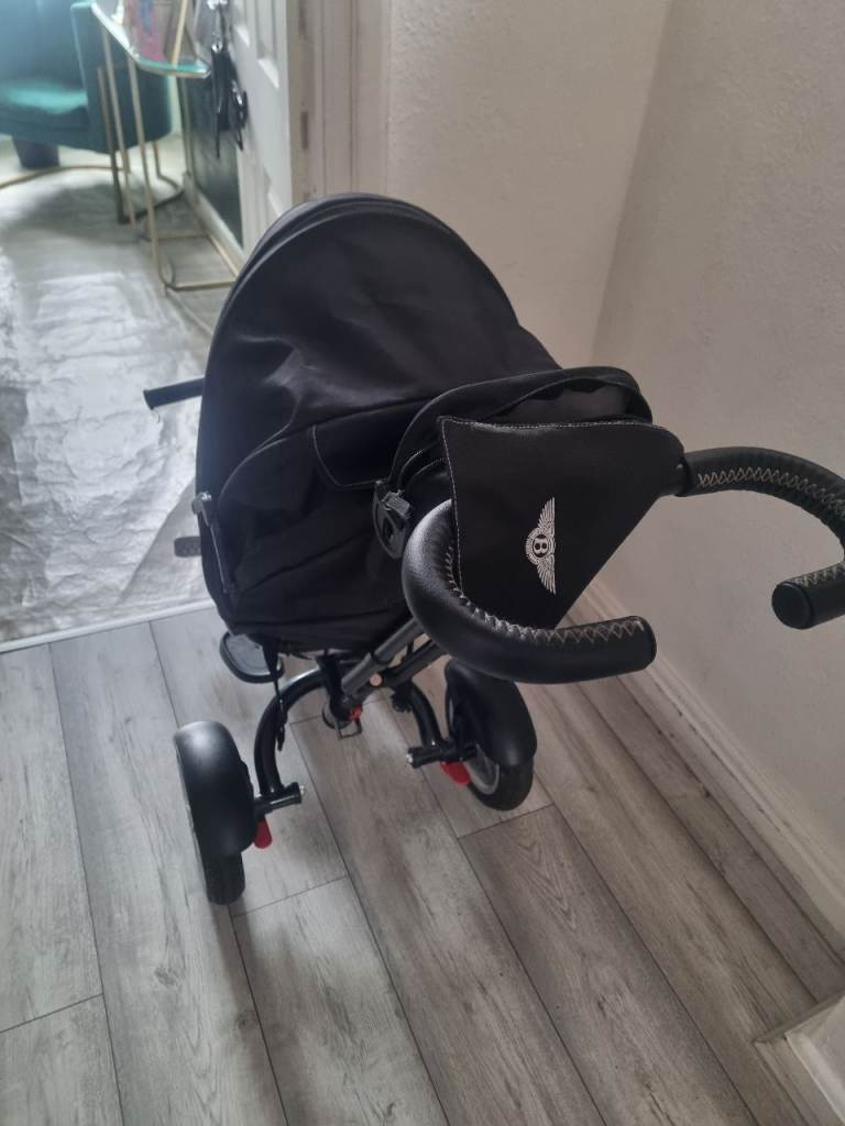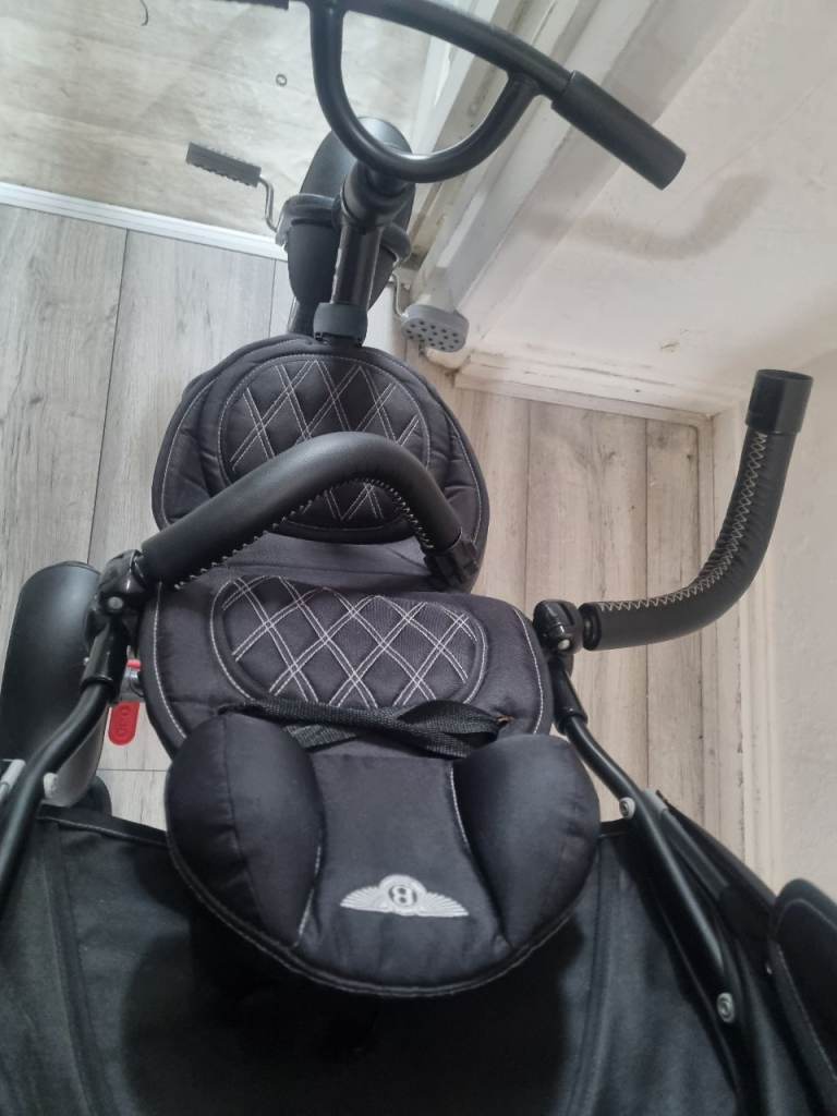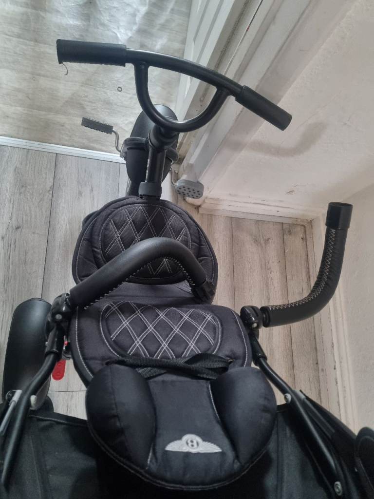 Kids Bentley trike can be used as a pushchair with steering or can be pedalled as a trike has storage and rain cover very good condition new tyre installed on rear