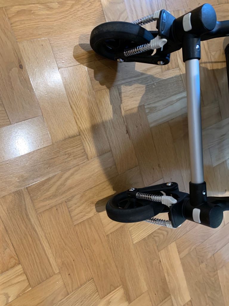 Aluminium chassis, Small front swivel wheels for easy maneuverability, easy to push and steer with one hand.