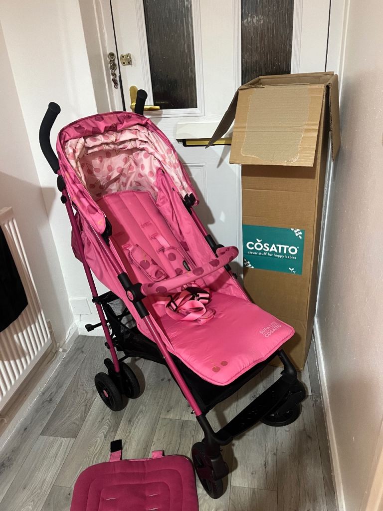 Like new condition. Stroller and footmuff. Proof of purchase uploaded. Raincover new in packaging. Box included. In perfect condition. £160 for it all. Which is a bargain because the pram was £130 new and then the footmuff was £85 new. Collections Crewe