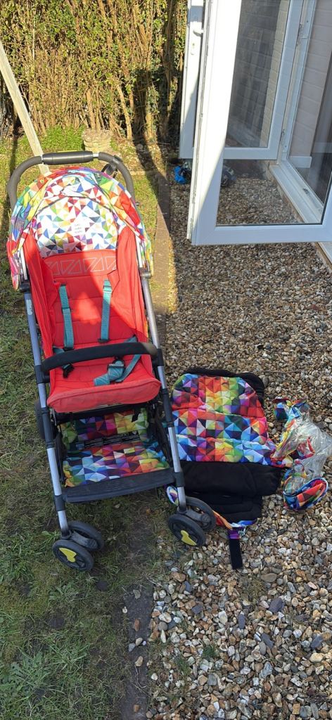 Cosatto Supa Lite Stoller Lollop with rain cover and matching liner/footmuff which was bought separate (still retailing online for £79 for footmuff on its own). Only been used a handful of times and has all been washed/wiped down for pick up. Like new condition. From smoke and pet free home. Pick up broughty ferry
