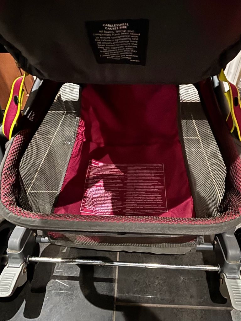 Good condition. Generous storage under seat. Very easy one click set up and fold. Takes up minimal space folded.