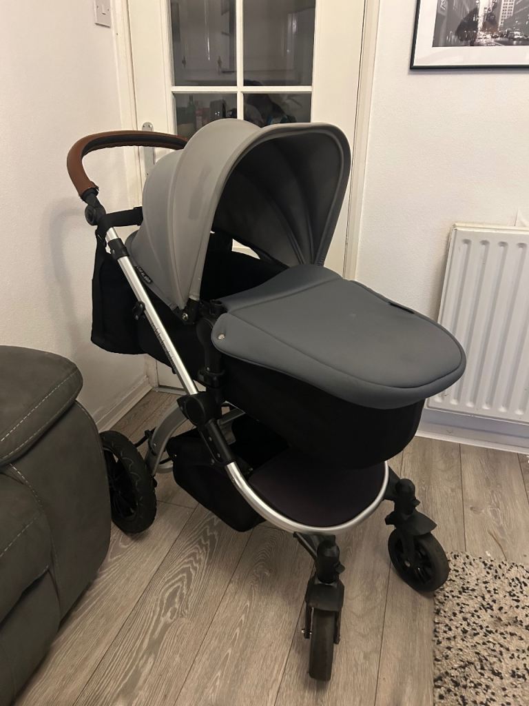 Ickle Bubba Pushchair. Used but in good condition. Comes with rain cover which has hardly been used, like new. Comes with a bag which has a travel baby changing mat inside. Can switch between bassinet for newborns and seat for older babies. Parts are faded due to sun and there is a light mark on the hood.