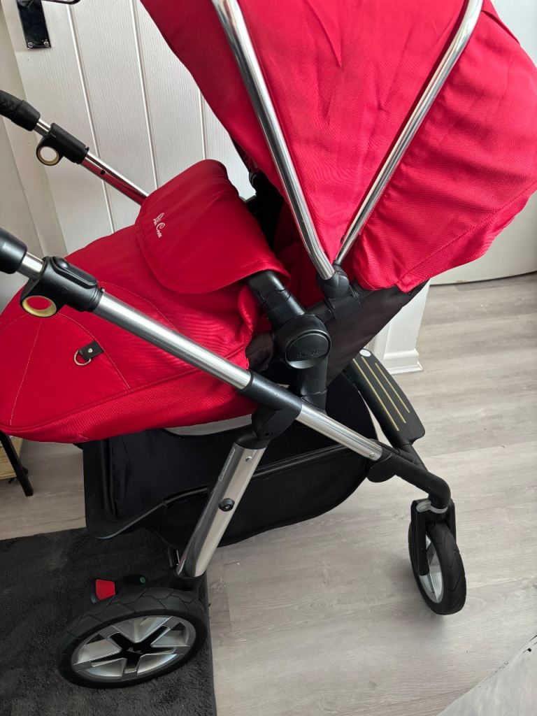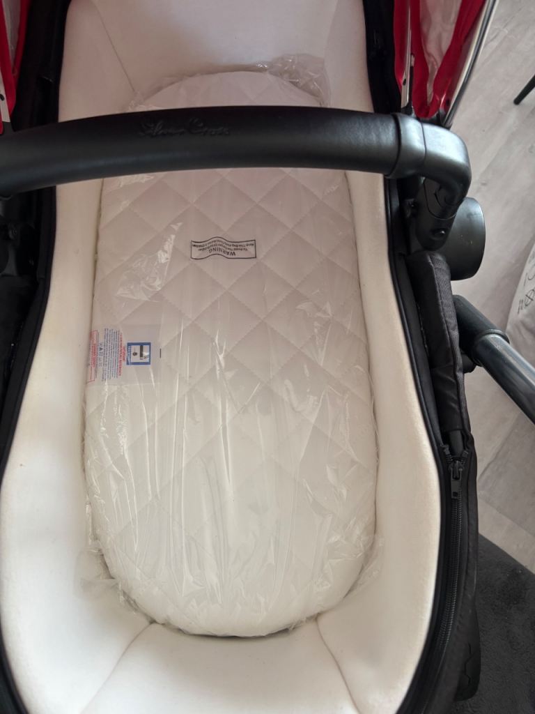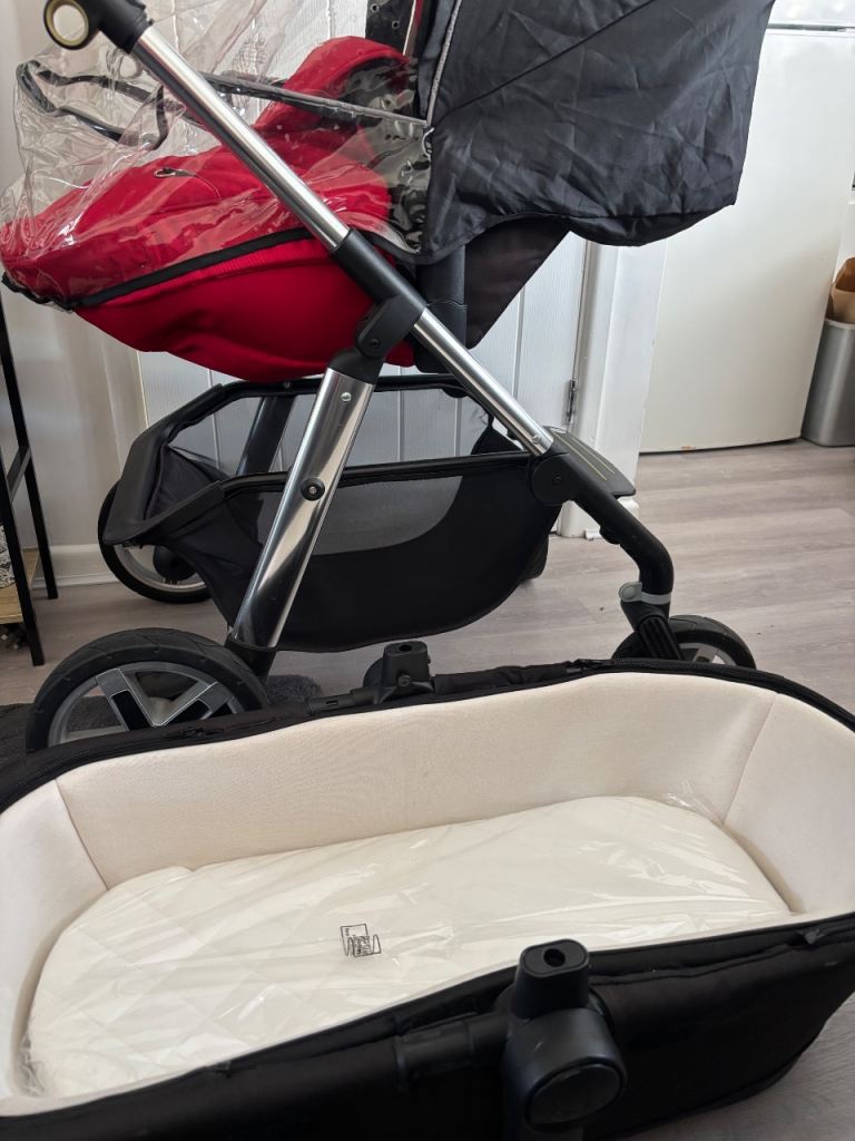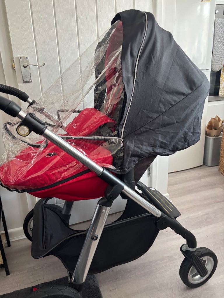 In a vigrant red comes with pushchair liner and footmuff and also a brand new mattress and rain cover. There are minor scratches on the chassis nothing to major it’s a lovely pushchair you will not be disappointed. Collection only Ip4