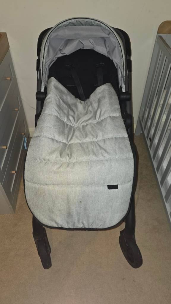 Comes with the Aluminium frame and bamboo lined carry cot, a lie-flat reversable pushchair seat and footmuff.