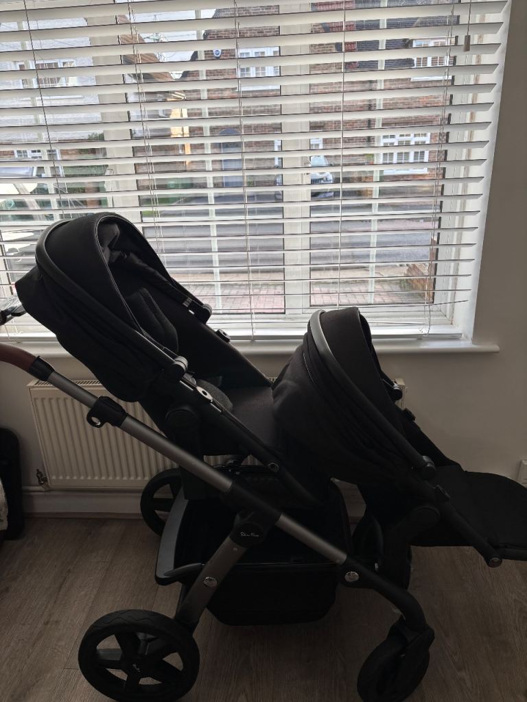 Silver cross wave tandem pushchair comes with my original chassis that’s in great condition. I purchased a new bassinet, seat and tandem seat in November ready for my new baby (all matching in black onyx). Seats and bassinet have only been used a few times and matress is clean and was covered in a mattress protector and sheet. My toddler wants to walk everywhere now so no longer needed. There are a few marks on the pushchair from getting it in and out of the boot but still in great condition. Also comes with bug nets, rain covers, tandem seat adapters and car seat adapters. I have taken photos of the different configurations but can send more photos or answer questions if needed. The pushchair can be used as a double pushchair or single. Collection from Crayford.