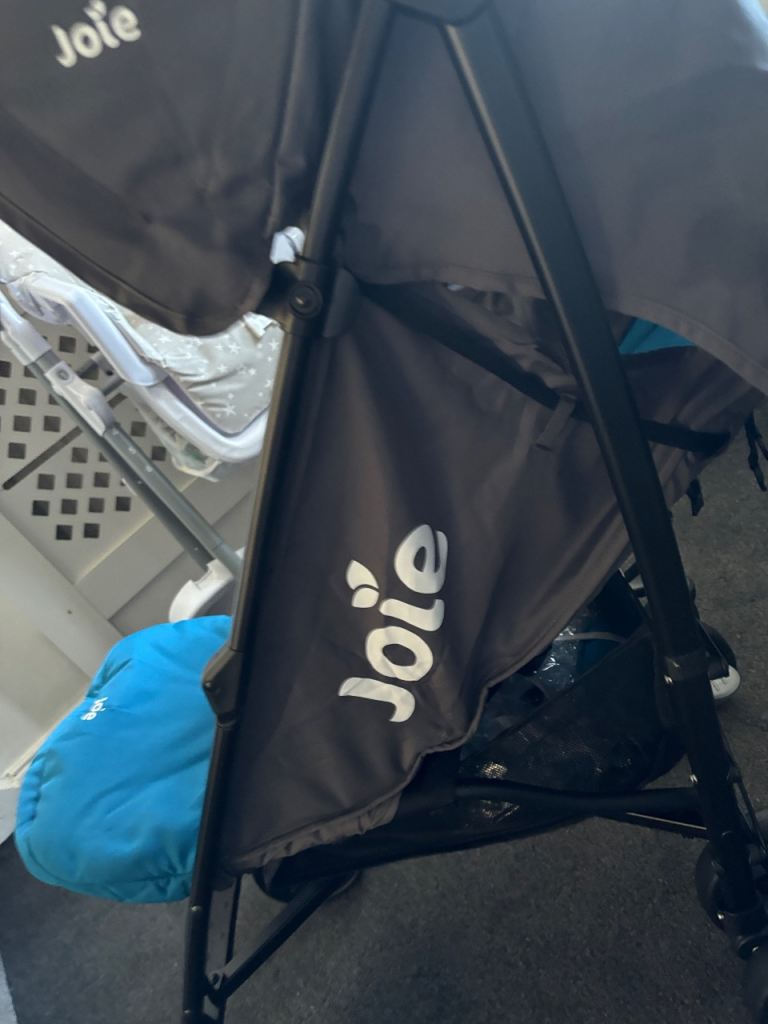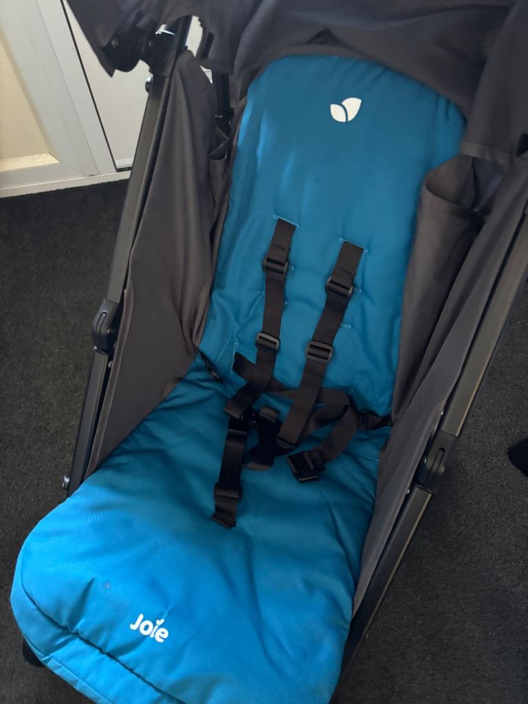 Joie stroller in blue and black. This has only ever been indoors used for my boys naps. In excellent condition. With rain cover which is unused