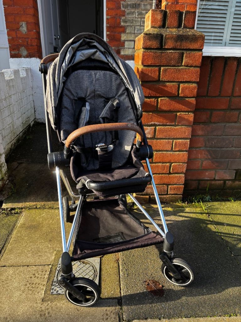 Selling our grey Cybex Mios pushchair with Lux Carry cot (or bassinet) and footmuff. Everything is in excellent condition, fully functional, and freshly cleaned.