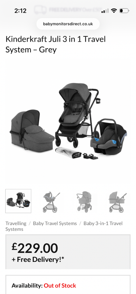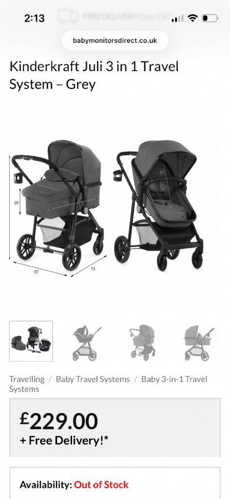Kinderkraft 3 in 1 Juli travel system. Was used for around 8 months and has then been in storage so is fully dismantled and in a box ( not original )