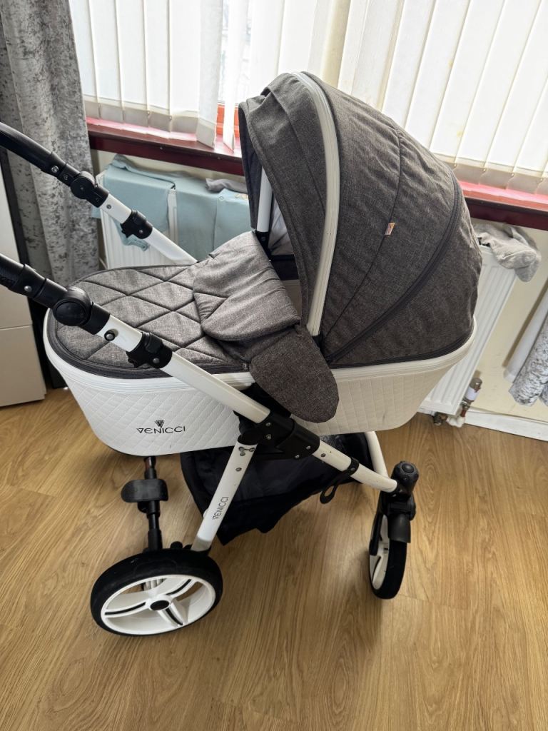 Has just been cleaned and serviced by peachy clean pram cleaning company.
