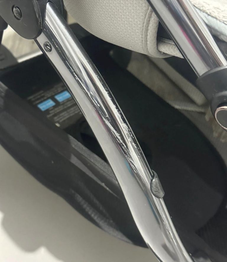 It's in good condition and good working order, it just has the general (scratches) as shown on the pictures, due to getting it in and out of the car. It doesn't affect the use, it has plenty of life left in it. It's a stunning pram and had nothing but good compliments about it when out and about. It's very modern and fashionable.