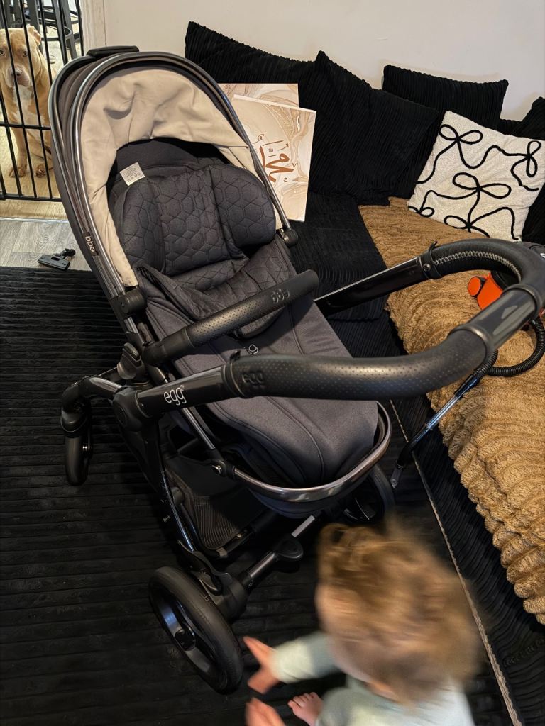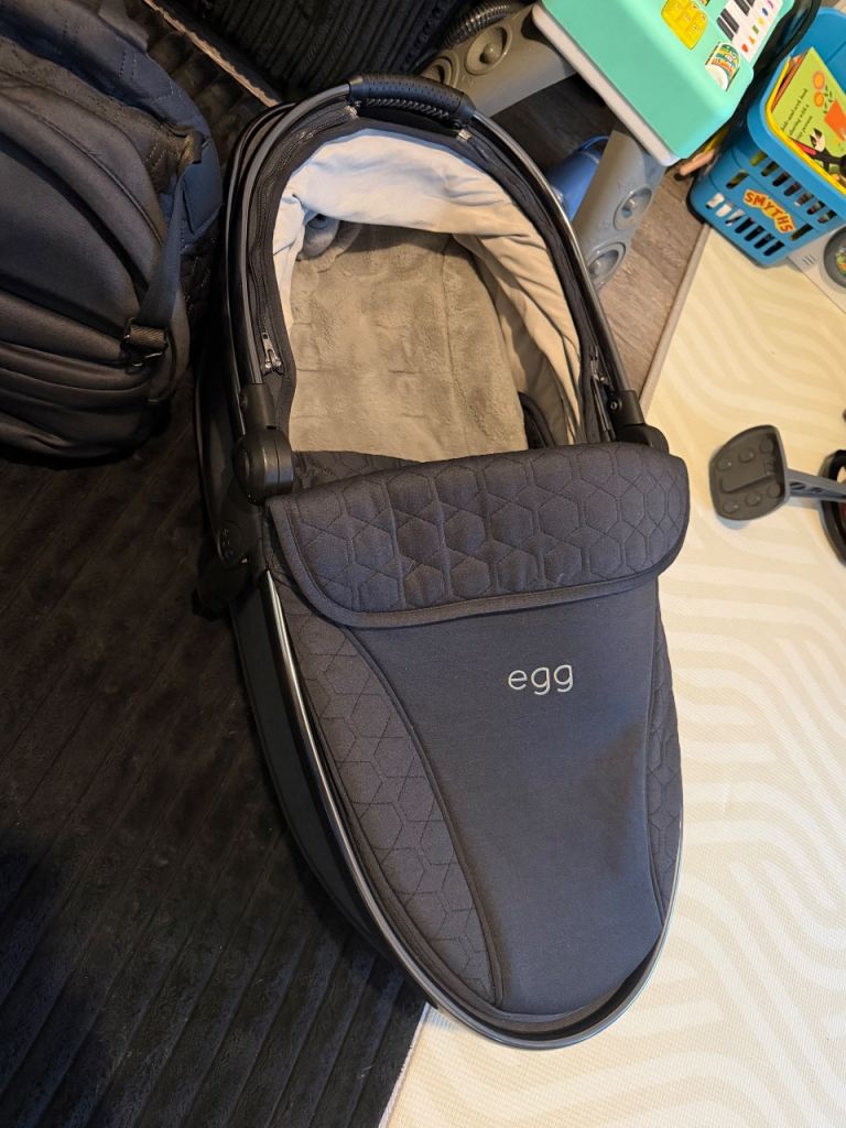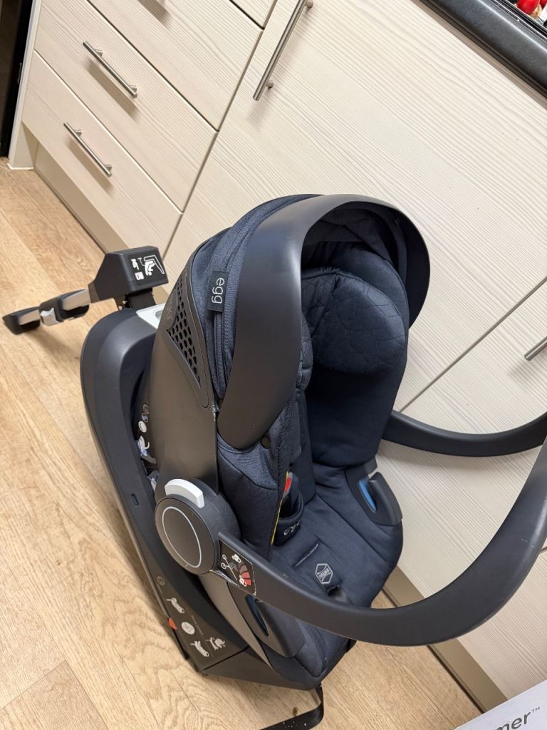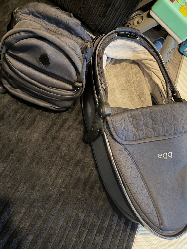 Egg pram with toddler and newborn fitting, egg baby bag , multiple inserts, egg car seat with isofix base. Car seat used once no crash history.