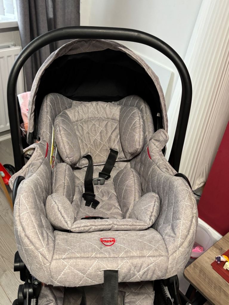LibreBon Pram bundle with car seat, changing bag & rain gears in great condition from a smoke free home.