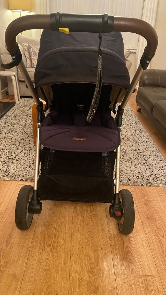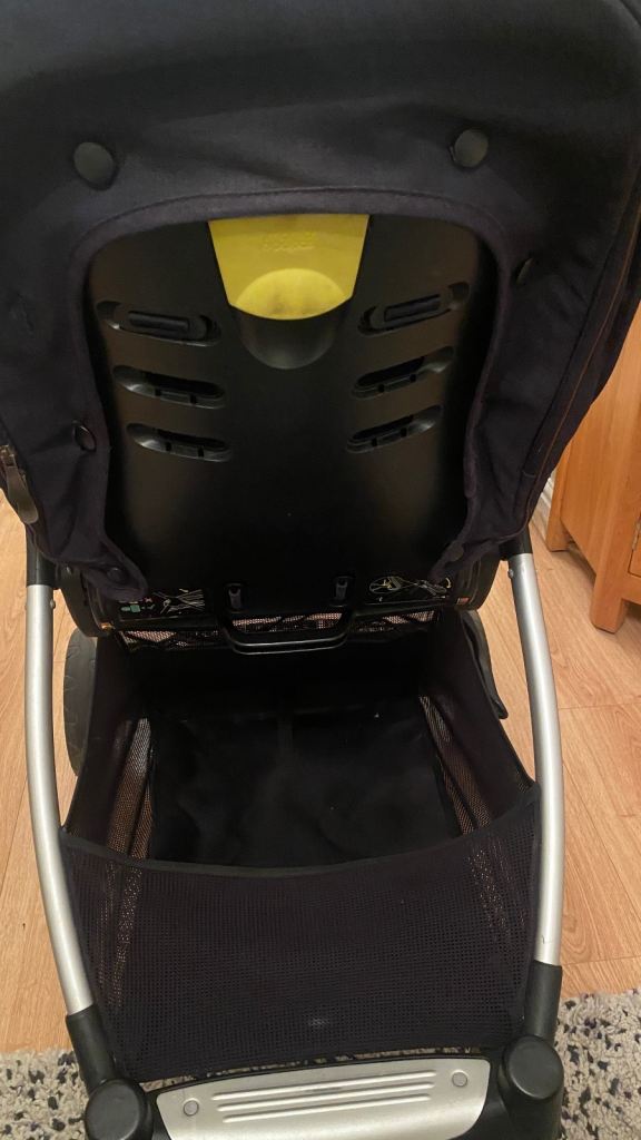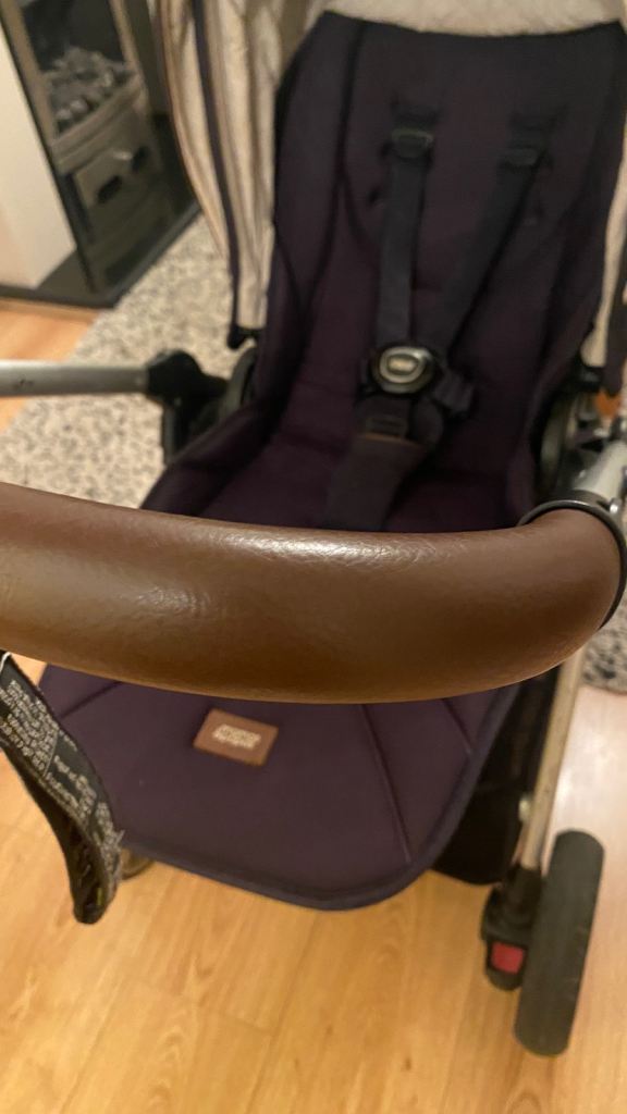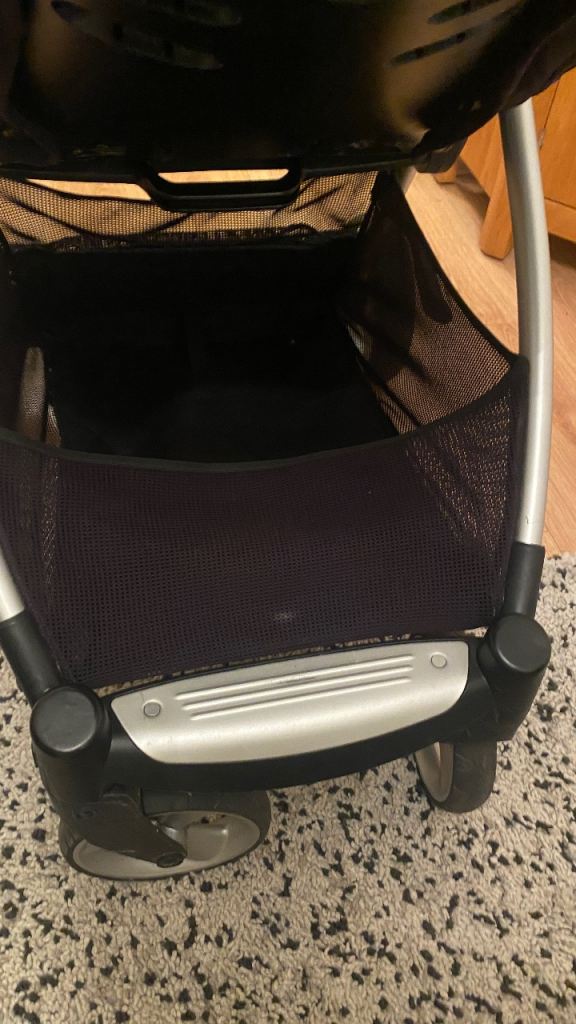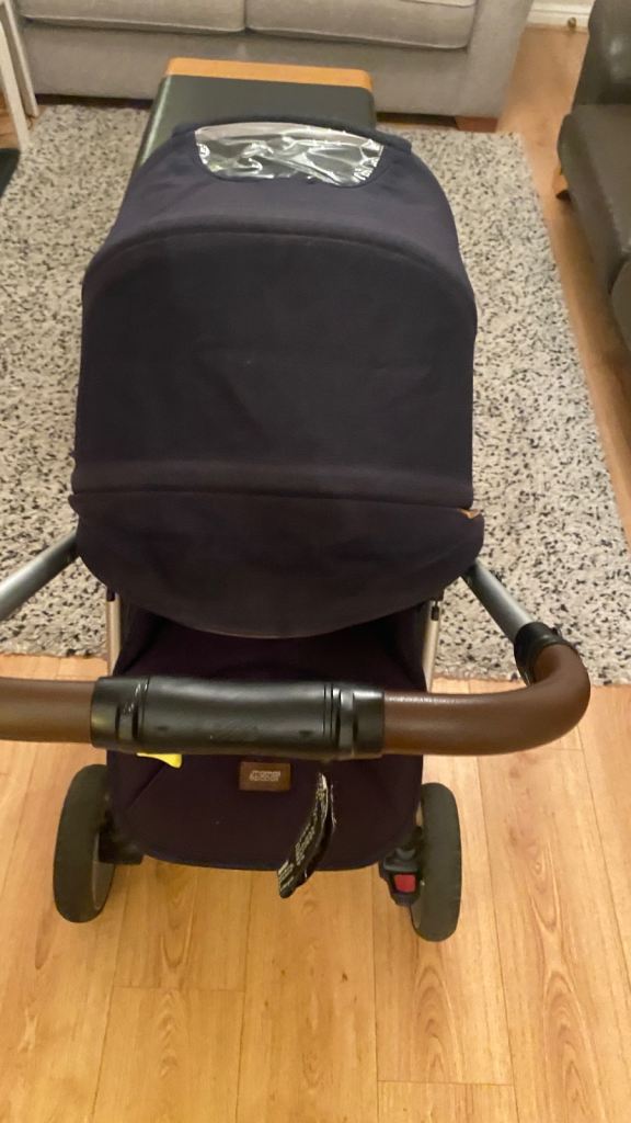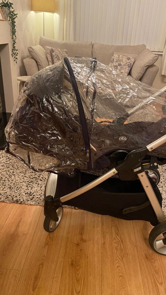 Paid over £1000 for it new. Lays down flat, cover comes all the way over to crest shade and privacy. Rain covers as new, basket underneath big and very handy for shopping. Collapses really easy and is very lightweight. Can be collapsed with one hand. Rear and front facing, handle can be extended also. Comes with car seat that has not been in an accident
