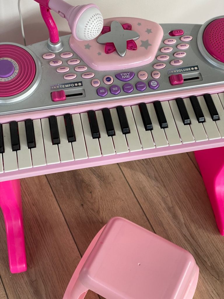 MUSICAL KEYBOARD STAND AND STOOL ATTACHED MICROPHONE ALL IN EXCELLENT CONDITION. AGE 3 AND OVER