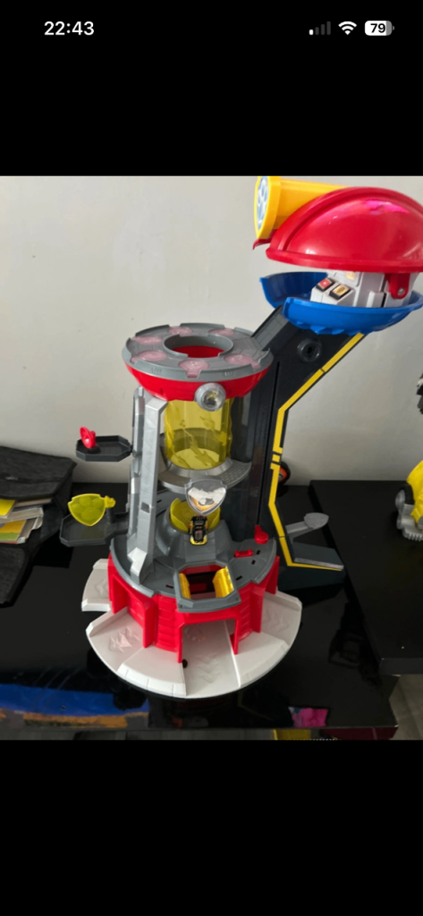Paw Patrol jumbling tower set with 48 blocks, 1 dice, instructions sheet and original box. There are three different colour blocks containing 16 red, 16 yellow and 16 blue.
