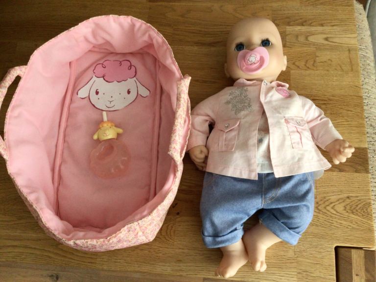 Baby Annabelle 16” Interactive Doll With Dummy, Carrycot & Bottle. Doll 2016. Good Condition. From a Smoke Free Home. Collection Only.