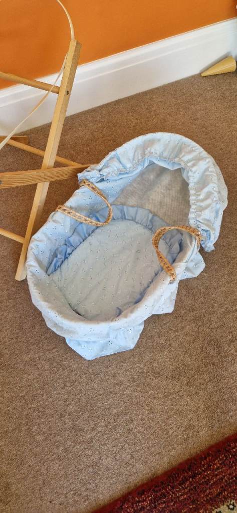 Both the stand and the Moses basket are in excellent condition. Measures approximately 24 inch in length by 13 inch wide.