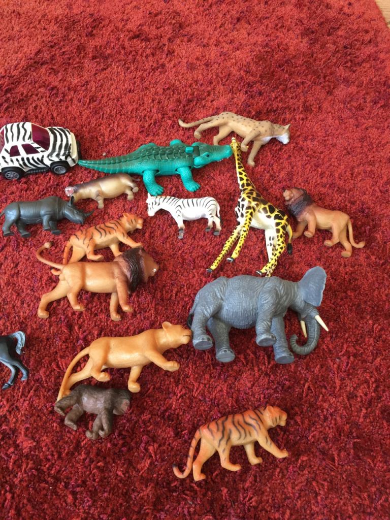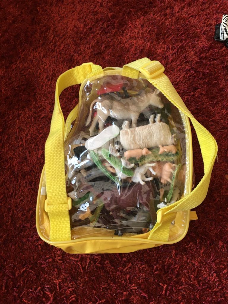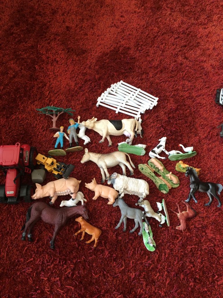 Lots of good quality animals with jeep and tractor. Farm animals in mini back pack. Make a great present! £8