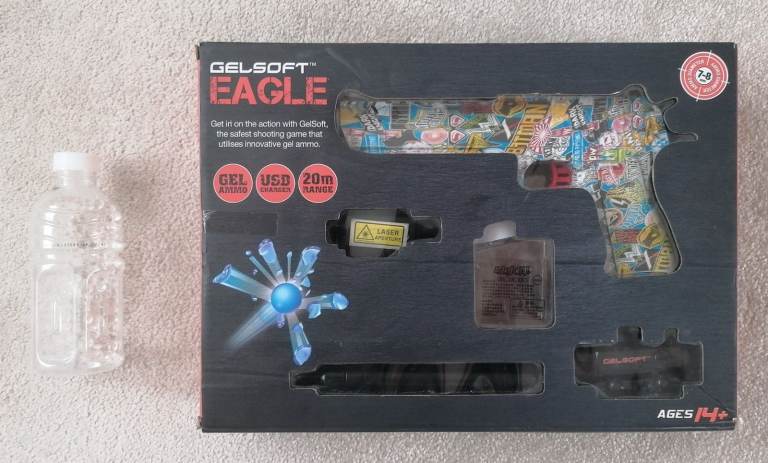 Gelsoft Eagle comic camo pistol, boxed and complete