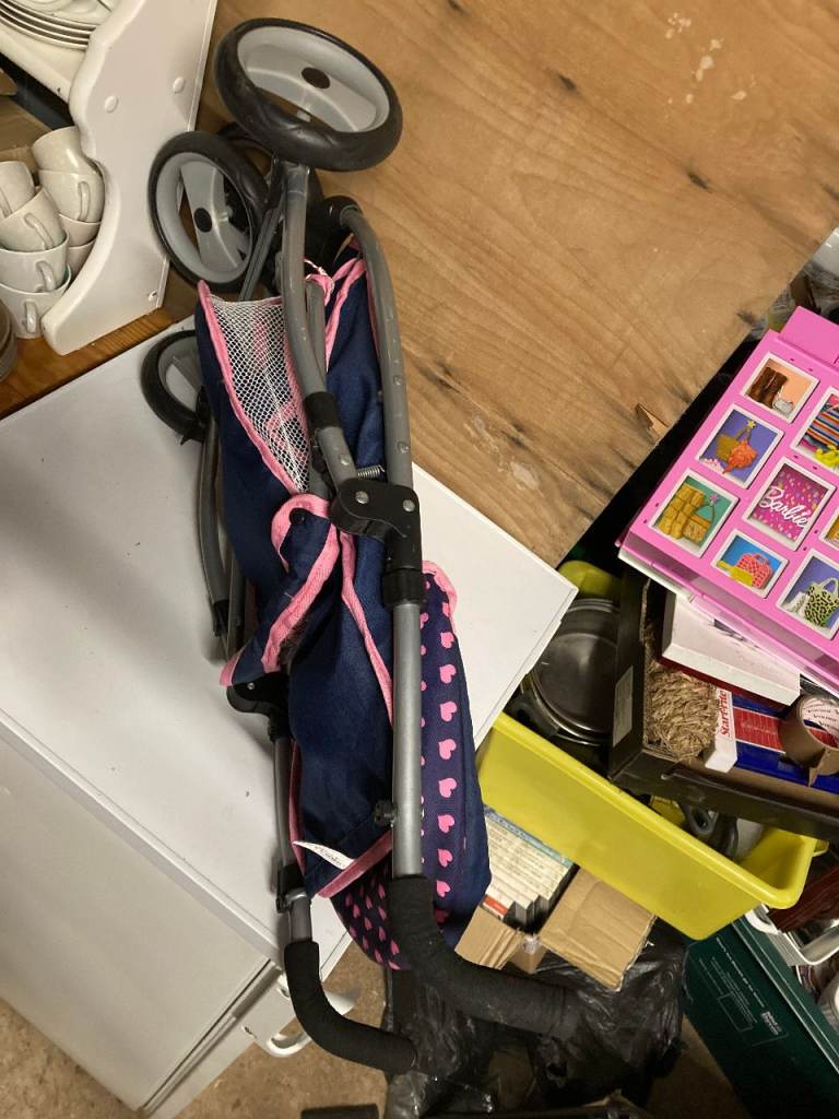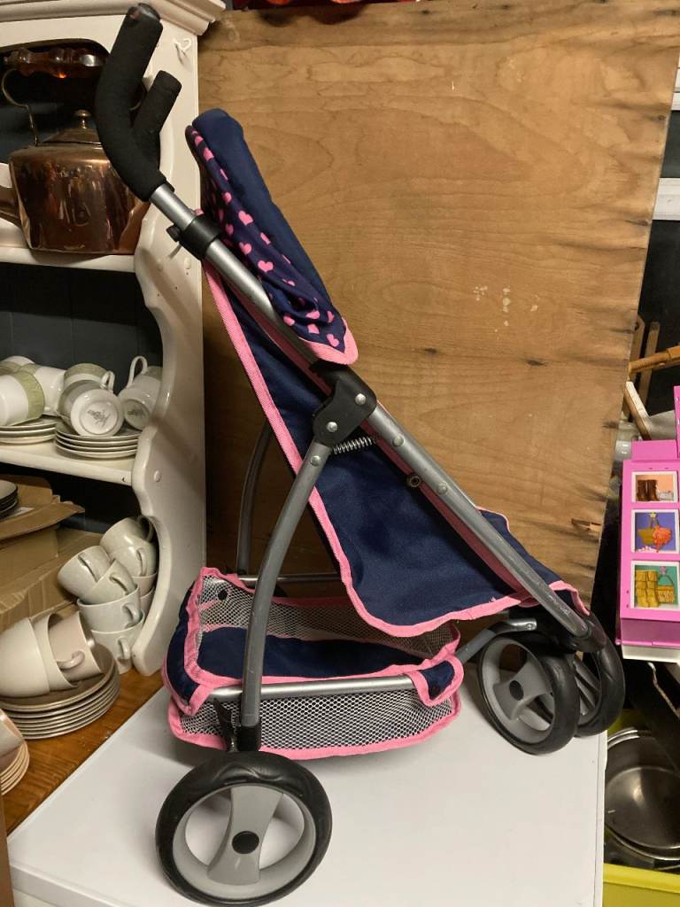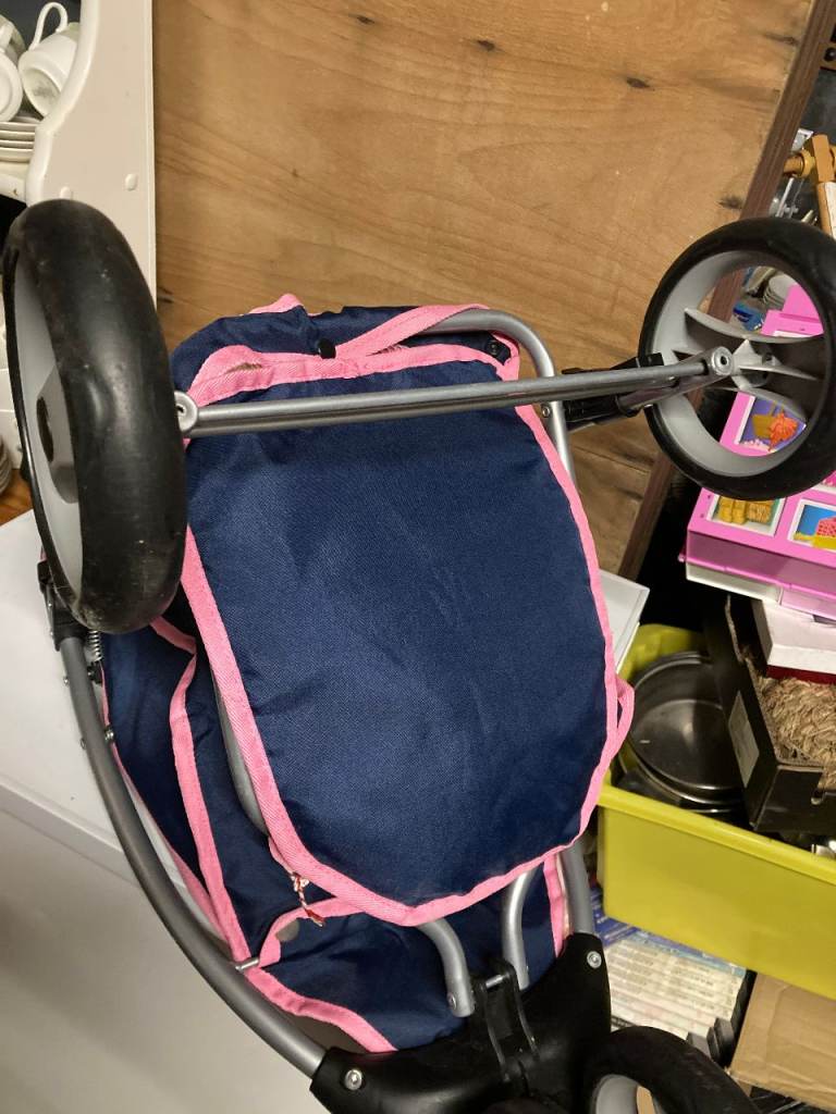 John Lewis folding doll's buggy. Fab condition all over apart from a couple of poppers on the basket underneath have been popped through, they are still there but have been tied up. Like new apart from that.
