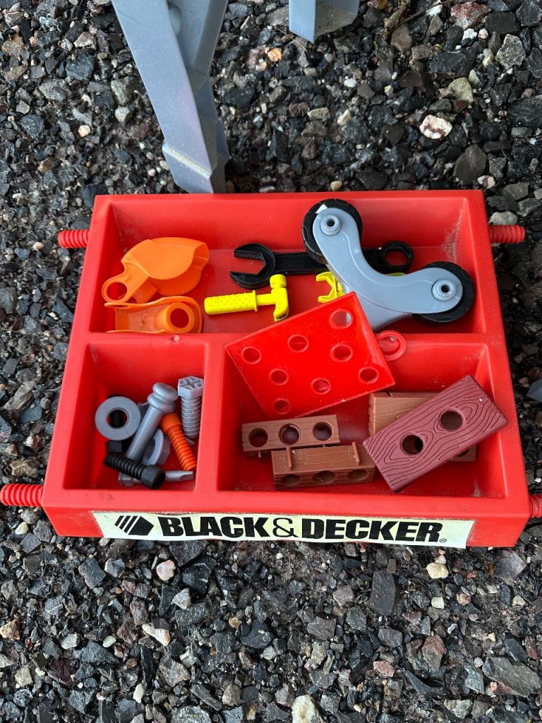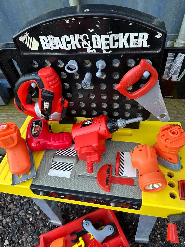 Kids play set for DIY with workbench and pretend tools-a mix of 2 different sets. The tool tray sits underneath. Collection only.
