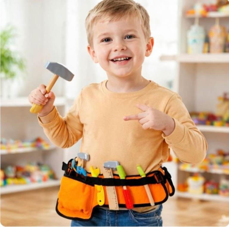 Encourage creativity and hands-on learning with this 7 Piece Wooden Tool Belt Play Set – perfect for little builders who love to role play!