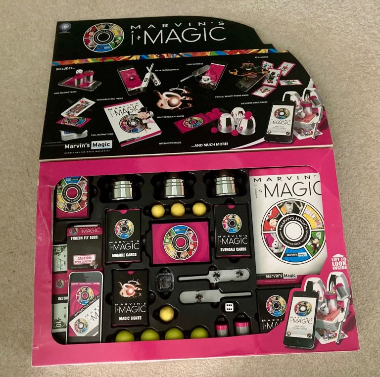 Combining traditional magic secrets with the latest technology. A bumper box collection of magical props that combine with the unique Marvin's iMagic App. 365 interactive magic tricks using your smart phone