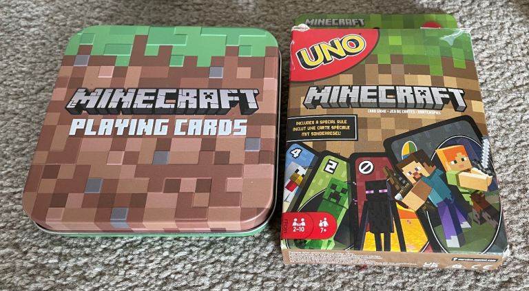 Minecraft bundle, lamp, stationery set, Lego figures, playing cards, and action figures