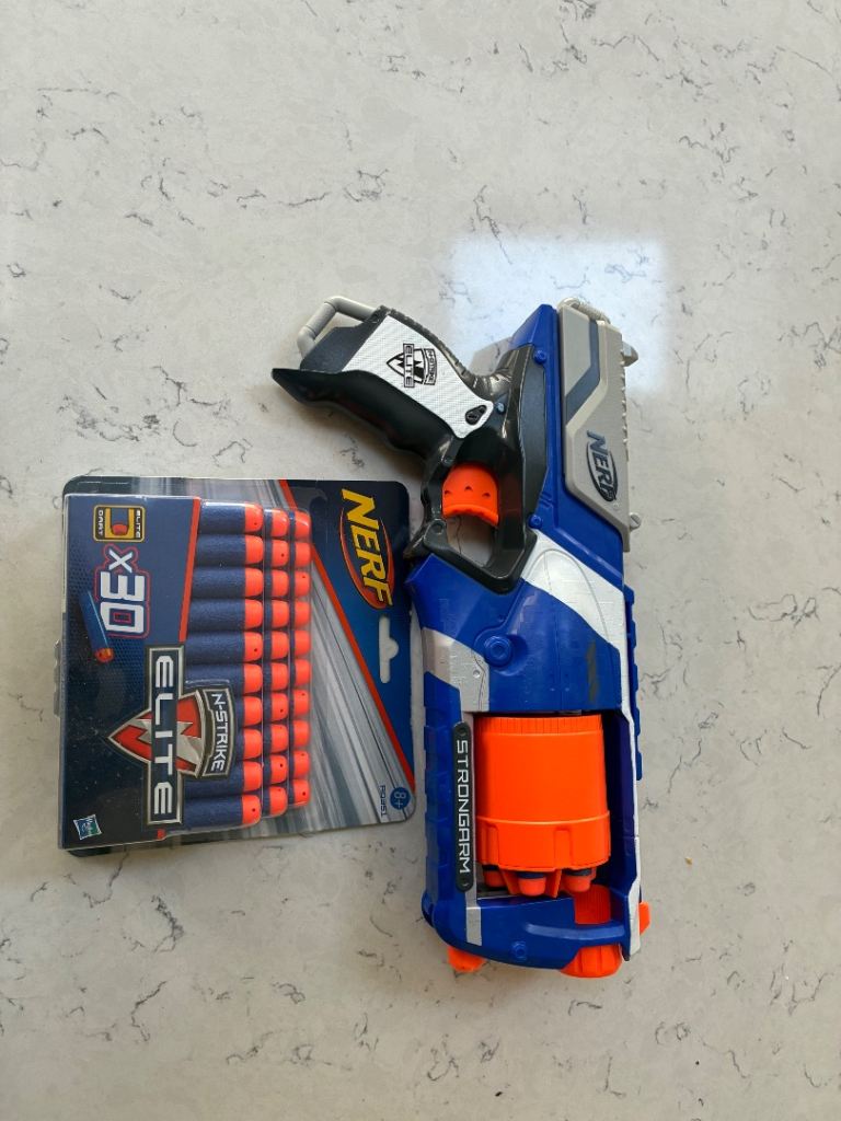 As new Nerf N Strike Elite Strongman Blaster -ready to go as loaded with 6 darts plus unopened additional pack of 30 darts. The blaster on it’s own is £15 on Amazon- this comes with free additional ammo! Buyer collects only from Guiseley, north Leeds.
