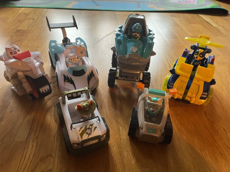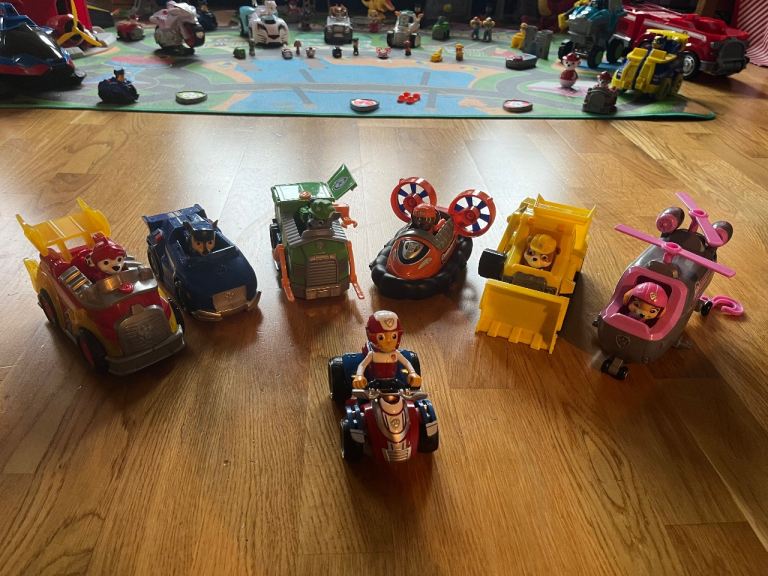 Full set of main Paw Patrol figures and vehicles.