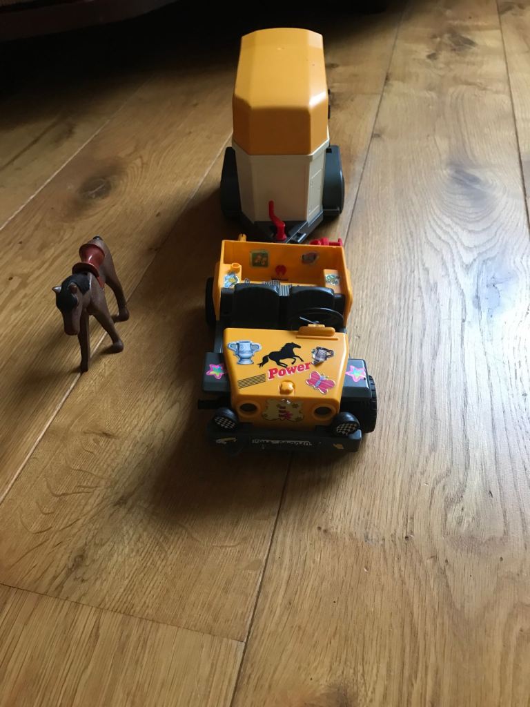 Includes horses, a wagon, a jeep, and a horse trailer.