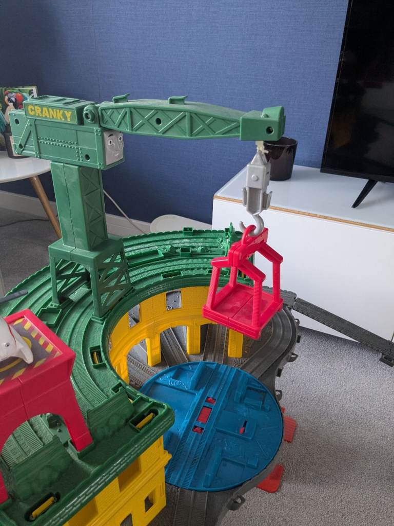 A working crane (cranky) and a cargo lift to move engines and goods between the levels of play