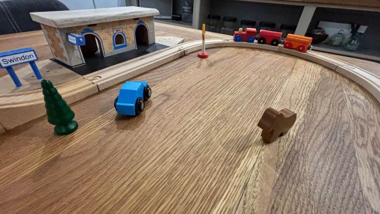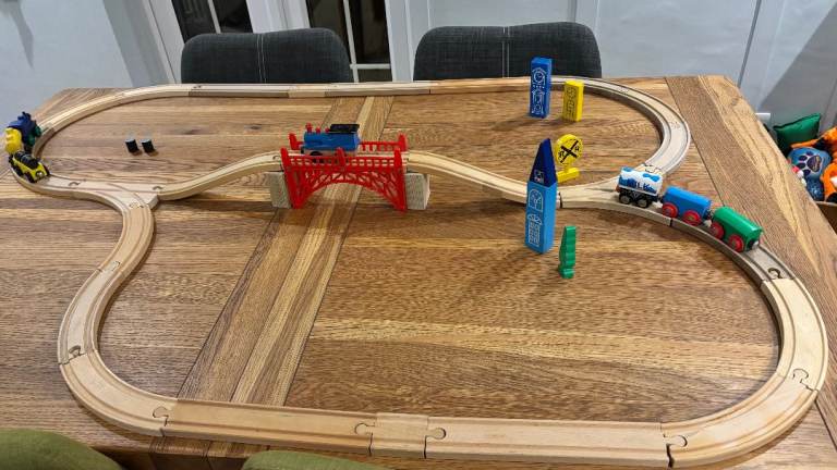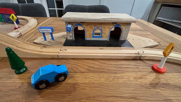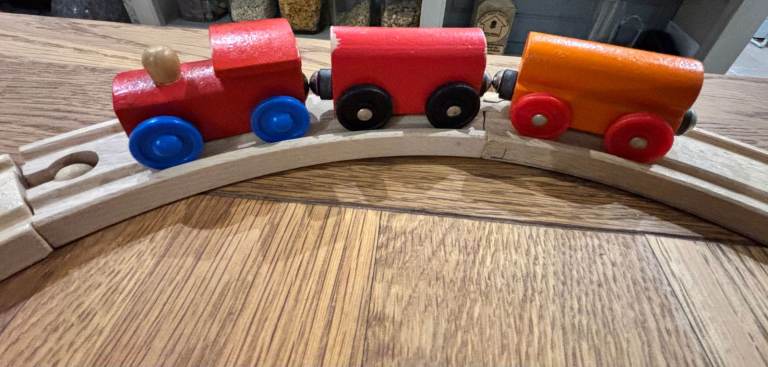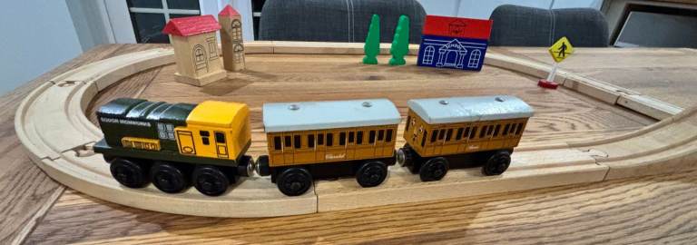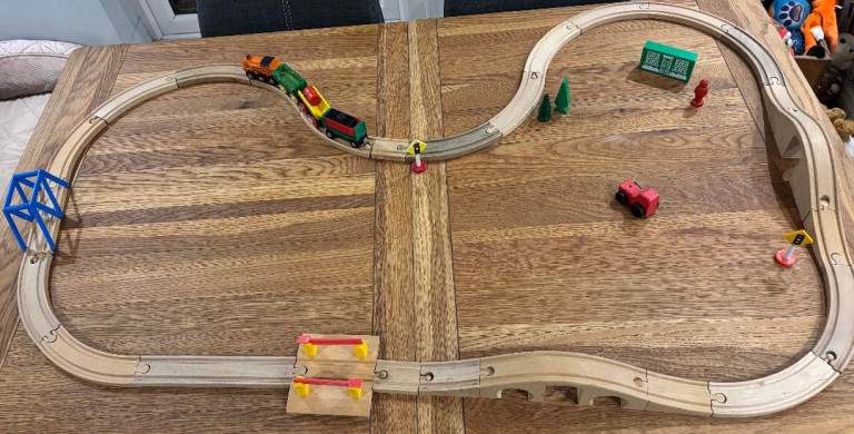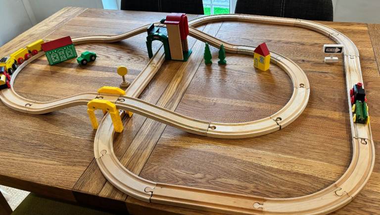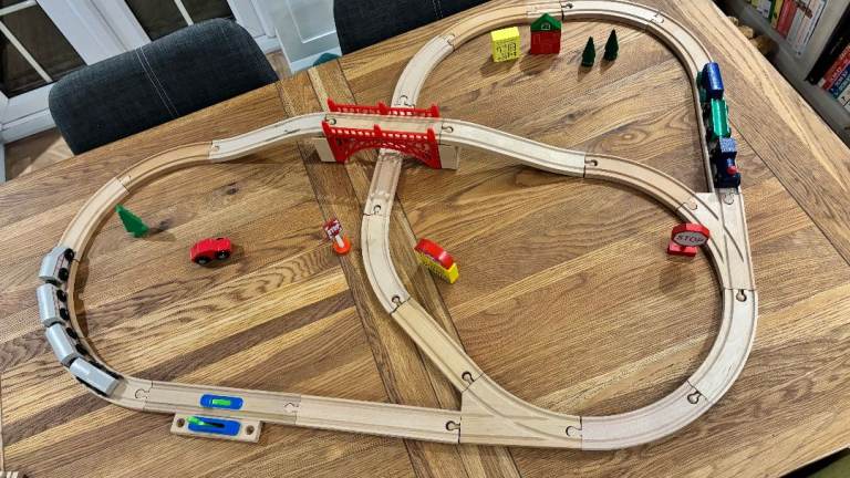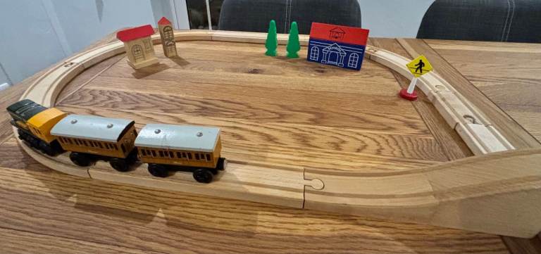 Wooden Train Track Set includes Trains/Station/Bridge & Accessories