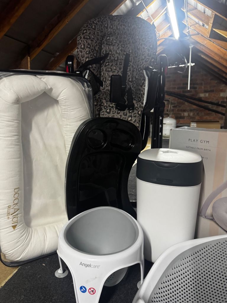 Posting for 1+ yearsSleepy head, baby bath, bath chair, high chair, nappy bin, walker, travel cot , play mat