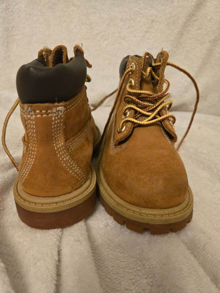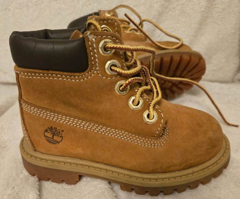 Timberland Premium primaloft 200 gram 6 Inch toddler boots wheat yellow Size 6.5. These boots have arch support and 200 grams of PrimaLoft® insulation to help keep growing feet warm and comfy, while a seam-sealed waterproof construction helps them stay dry. A padded collar helps add more comfort, and a steel shank helps offer arch support.