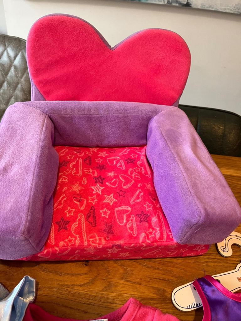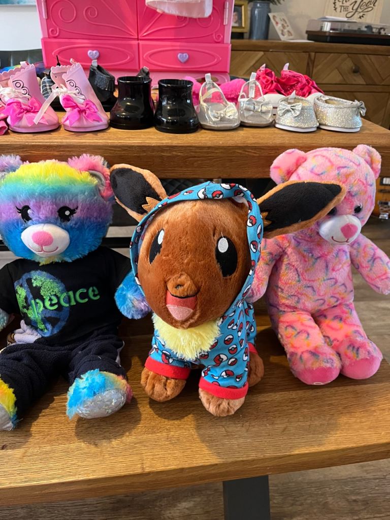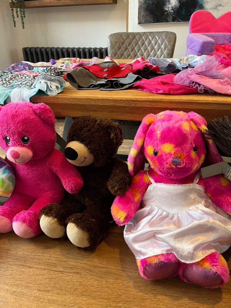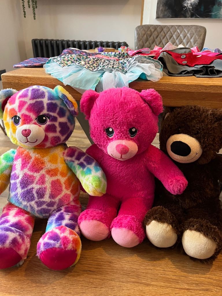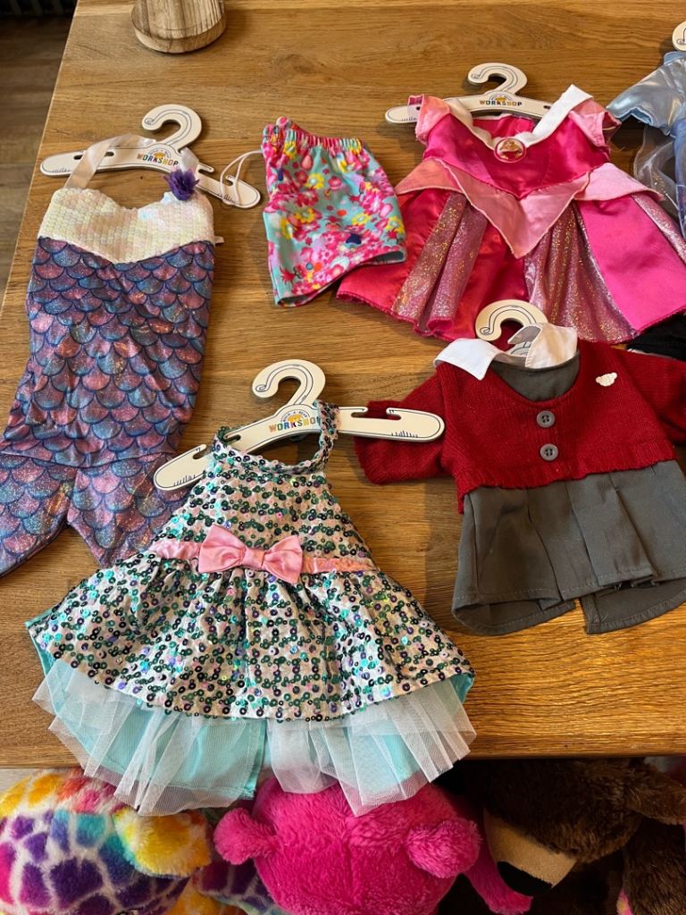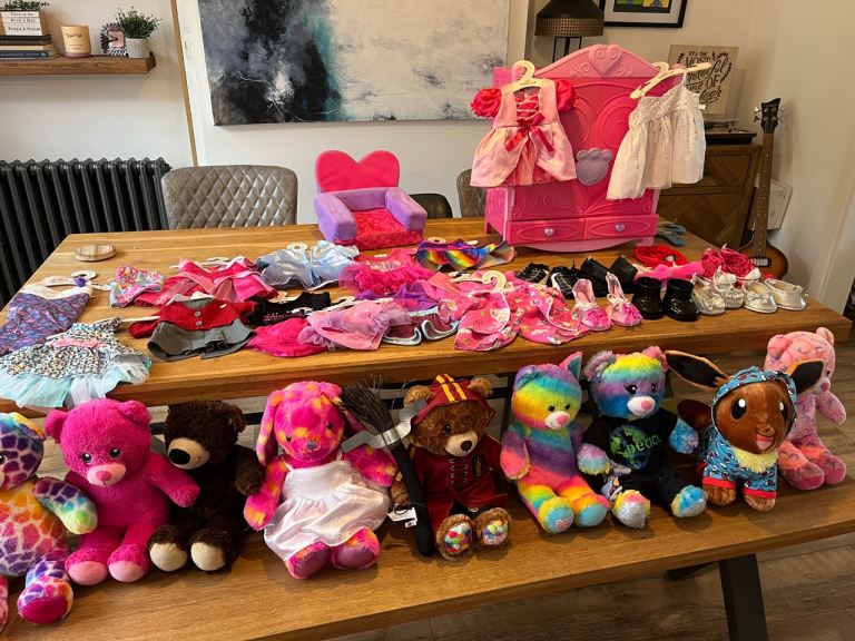 Large build a bear bundle including wardrobe, chair, clothes, hangers, shoes and bears.