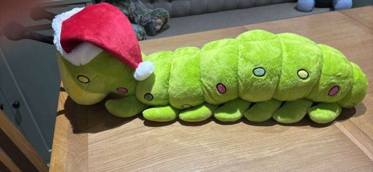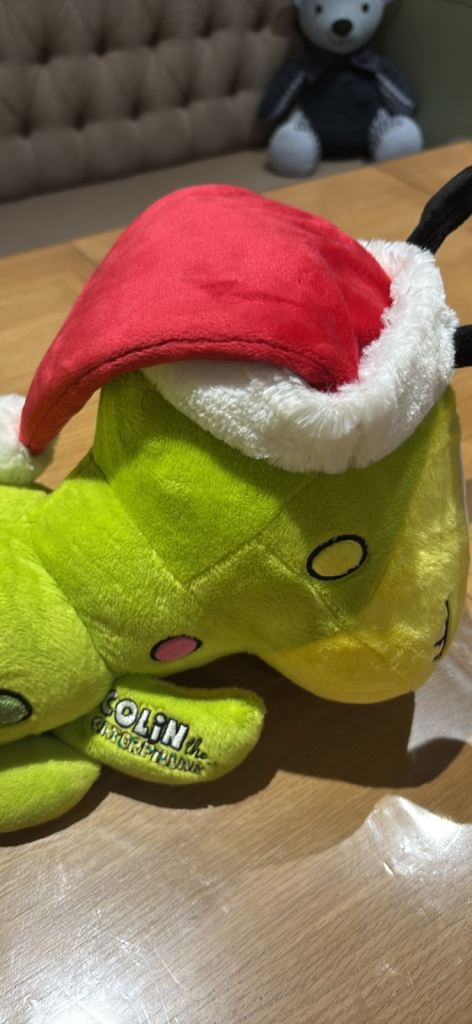 M&S Colin the caterpillar with Christmas hat
