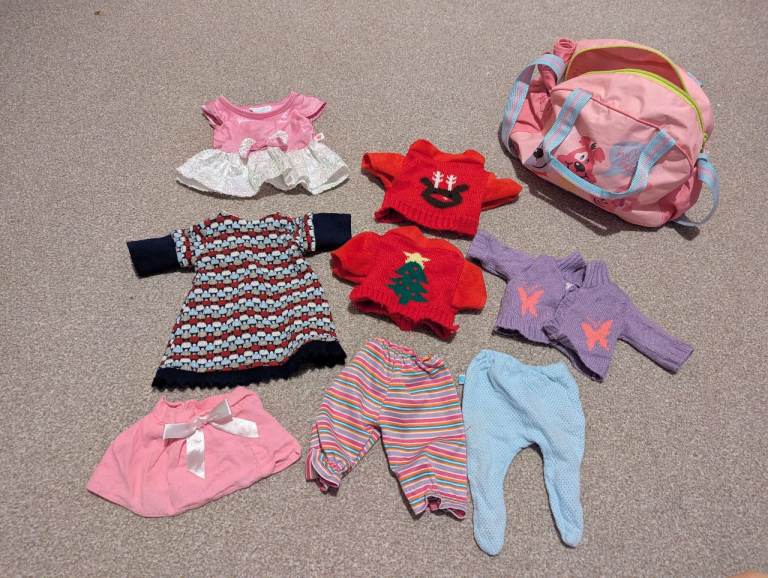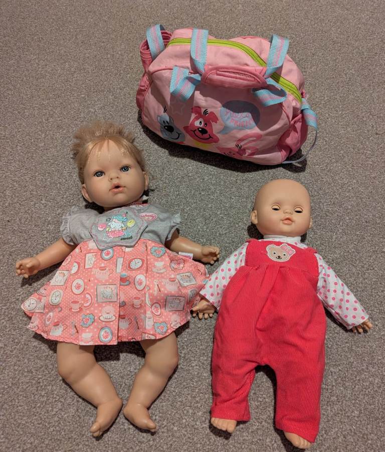 I have a dollhouse, three Barbie dolls, two Baby Born dolls and doll clothes for sale