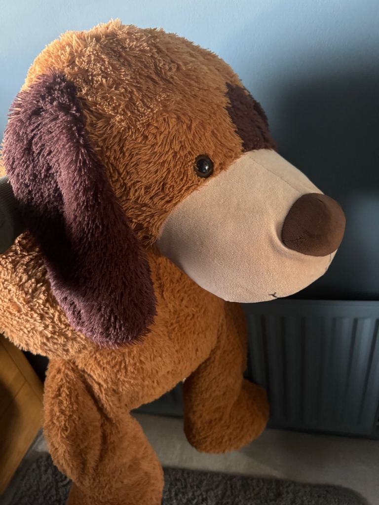 Huge soft toy 135cm tall. Would make a perfect companion for any dog loving child. My son loved this dog! Perfect for laying on and chilling.