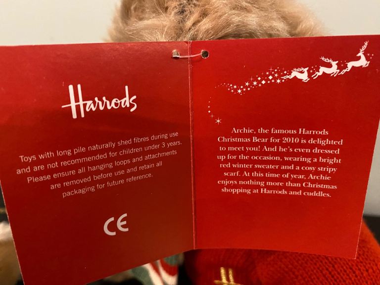 HARRODS TEDDY BEAR “ARCHIE BEAR 2010” TOY / COLLECTIBLE WITH TAG